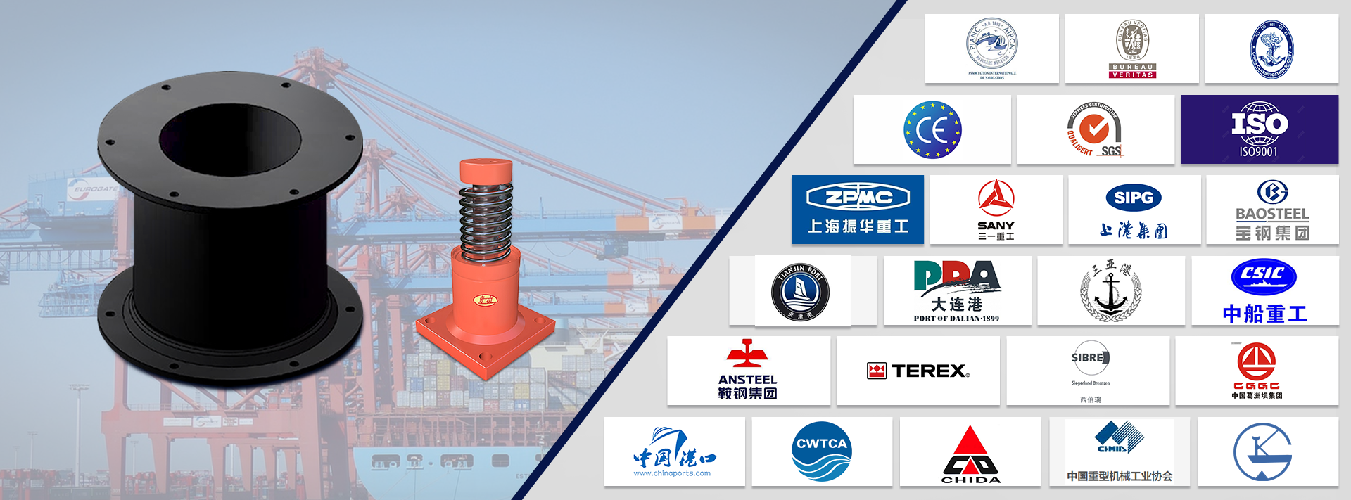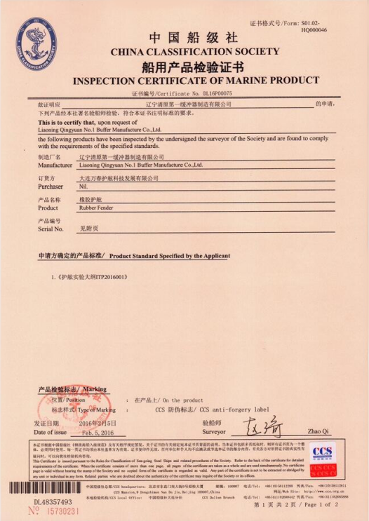 我們公司生產的緩沖器產品受到國際用戶的認可,同時獲得CE 國際認證證書、BV 國際檢測認證、PIANC會員證書、中國船級社認證證書、SGS國際認證證書等。同時,我們公司榮獲中國港口碼頭鏈商俱樂部會員、世界杰出華商協會會員、中國制造網認證供應商等榮譽。